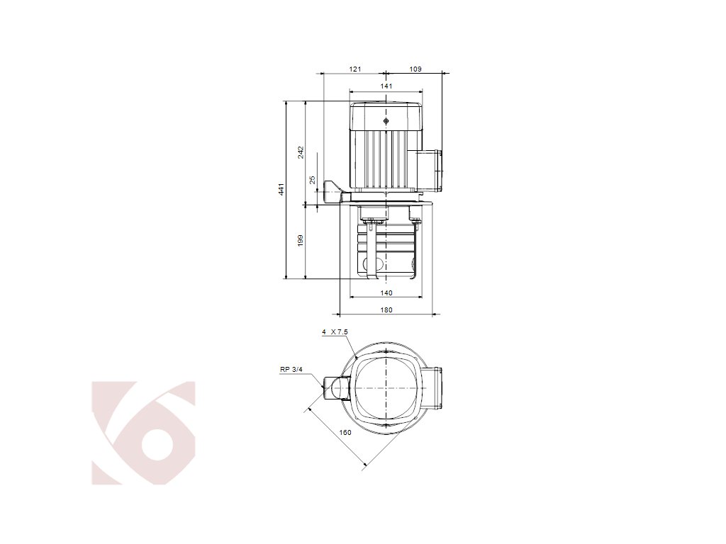 Čerpadlo je přímo spojeno s 3fázovým motorem.