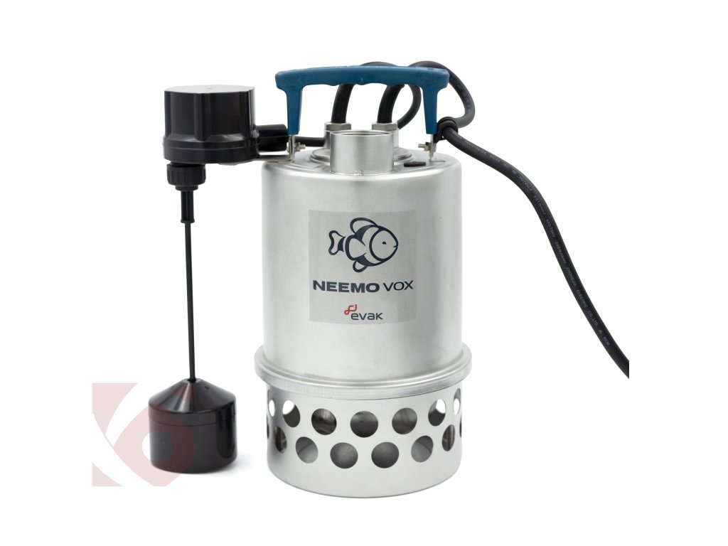 Nerezové drenážní čerpadlo NEEMO VOX-5.03 NSAV s dvojitou mechanickou ucpávkou a odvzdušňovacím ventilem, určené pro spolehlivé odčerpávání čisté i znečištěné vody s kusovitými nečistotami až 20mm z nádrží, sklepů a garáží.