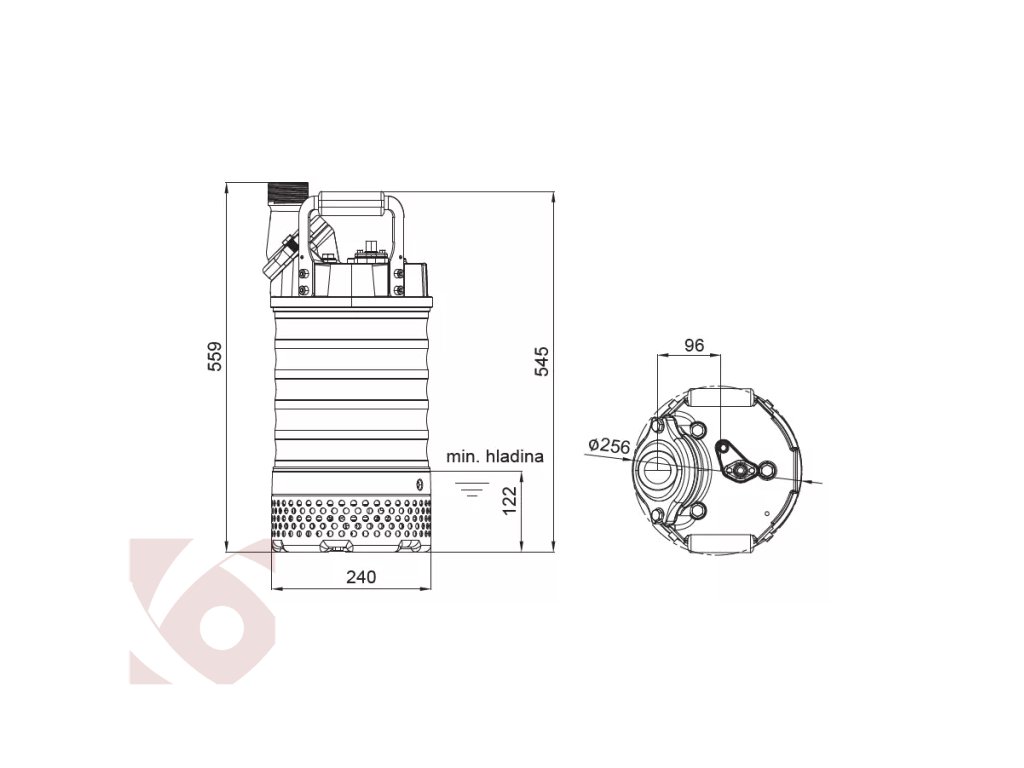 Dodávka standardně s kabelem H07RN-F v délce 10m, jiné délky na požadavek. Výtlačné hrdlo lze nastavit do horizontální nebo vertikální pozice dle potřeby