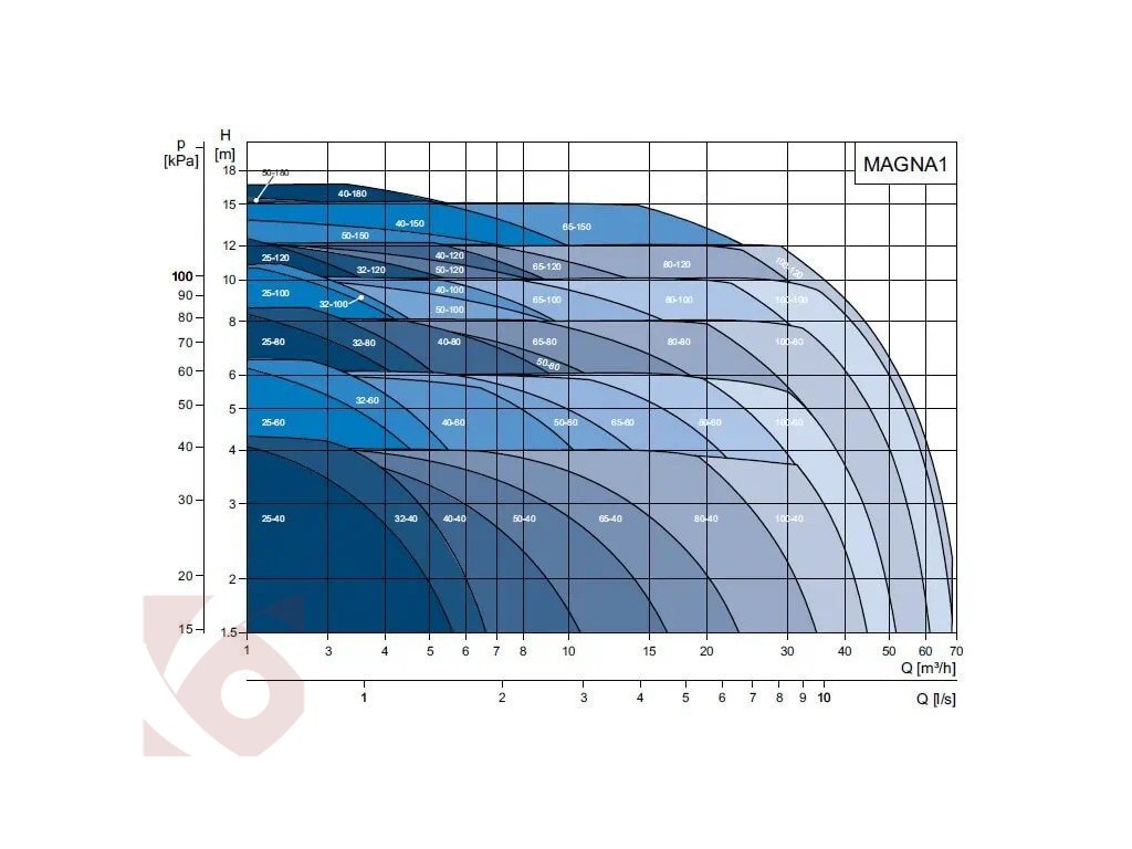 Oběhová čerpadla GRUNDFOS MAGNA1 jsou určena k cirkulaci kapalin v topných soustavách s proměnným průtokem, u nichž je žádoucí optimalizovat nastavení provozního bodu čerpadla, čím se sníží náklady na energii. K zajištění správného provozu je důležité, aby se dimenze dané soustavy kryly s výkonovými parametry čerpadla.