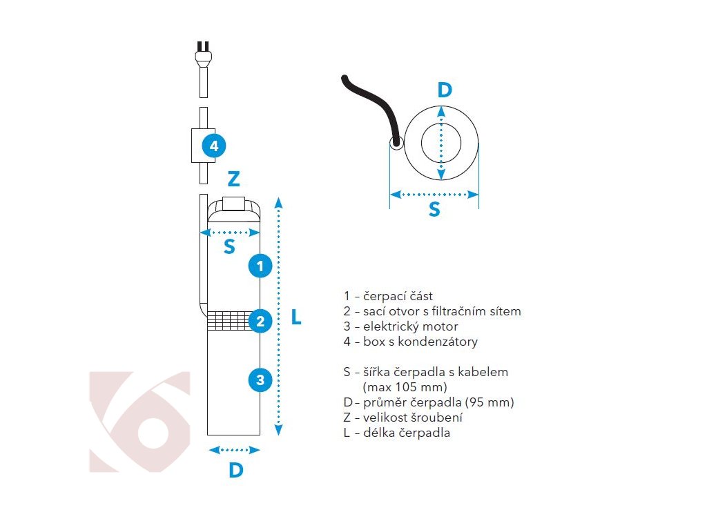 - Malý průměr čerpadel umožňuje jejich umístění i do úzkých vrtů (min. Ø vrtu 110 mm)